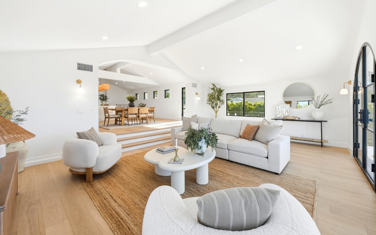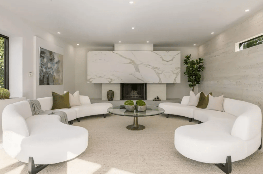 The surrounding environment also plays a role. Shaffer notes that the home’s views of the tree-covered mountains of Laurel Canyon likely informed the design choices. With no ocean in sight, the brighter white tones provide contrast against the greenery, enhancing the connection to nature rather than competing with it.