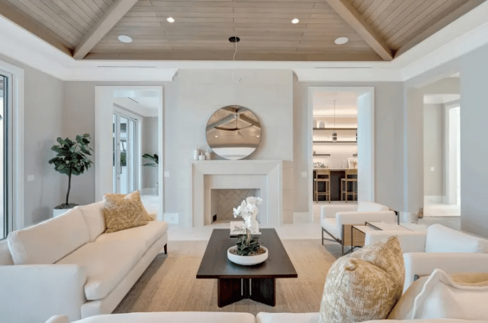 Similarly, an oceanfront estate in Ocean Pearl, a gated community in Vero Beach, Florida, balances crisp white interiors and exteriors with warmer architectural details. Wood ceilings and floors, Shaker-style cabinetry, and classic crown molding add depth and comfort. “You could place this house almost anywhere and believe it belongs,” says Shaffer, pointing to the strength of its architectural choices. These details, she adds, shape how a home feels emotionally—and here, the result is a space that feels welcoming, livable, and timeless.