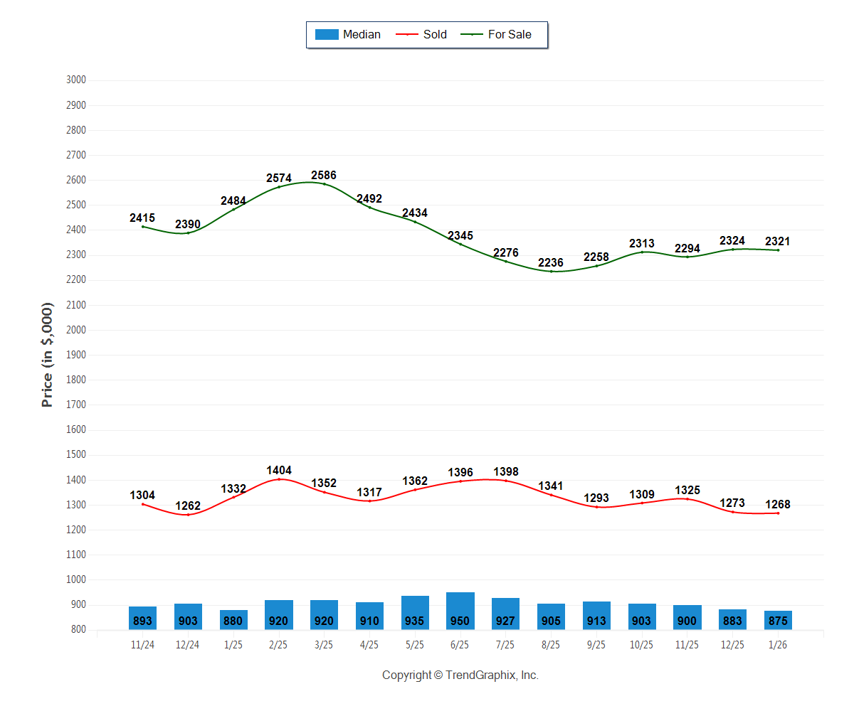 Average Median Sold Price in January 2026: $875